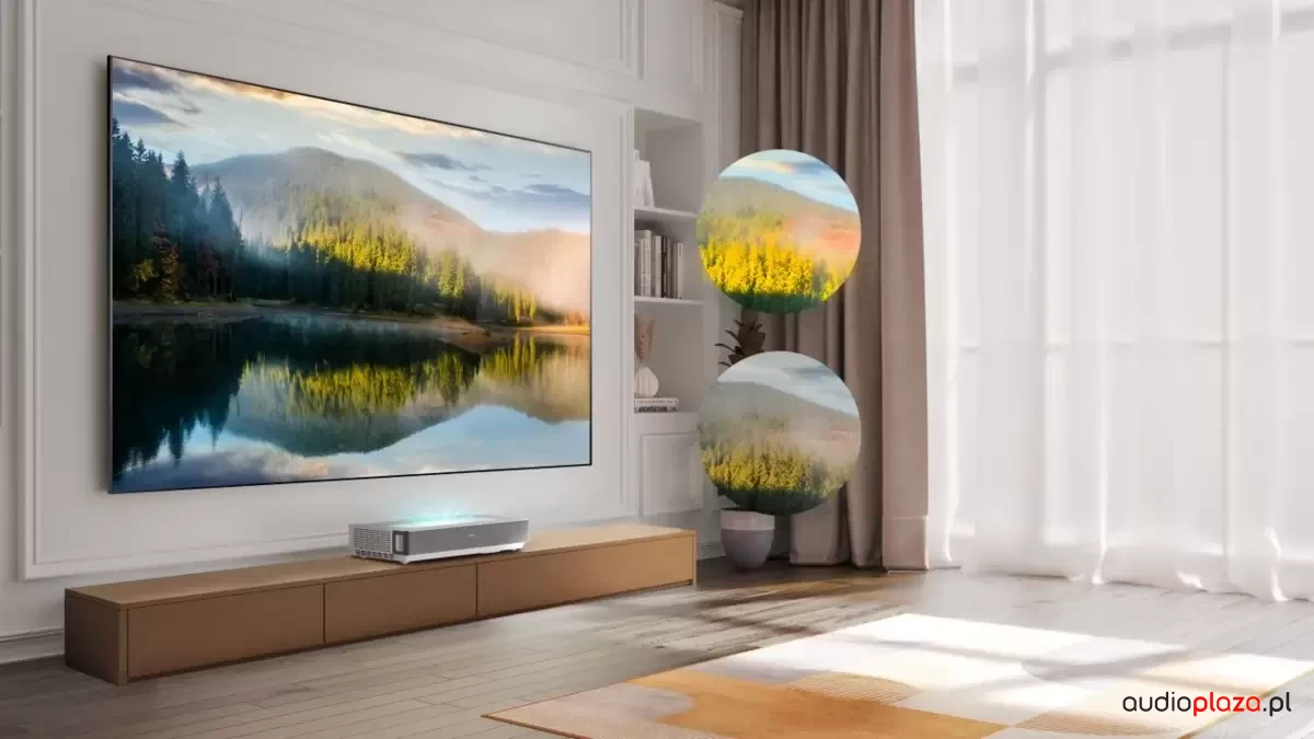 Laser TV odwzorowuje ponad 16,7 miliona odcieni, zapewniając niezwykle realistyczne i nasycone kolory. Zieleń trawy, naturalne odcienie skóry i intensywne barwy animacji – wszystko wygląda dokładnie tak, jak powinno.